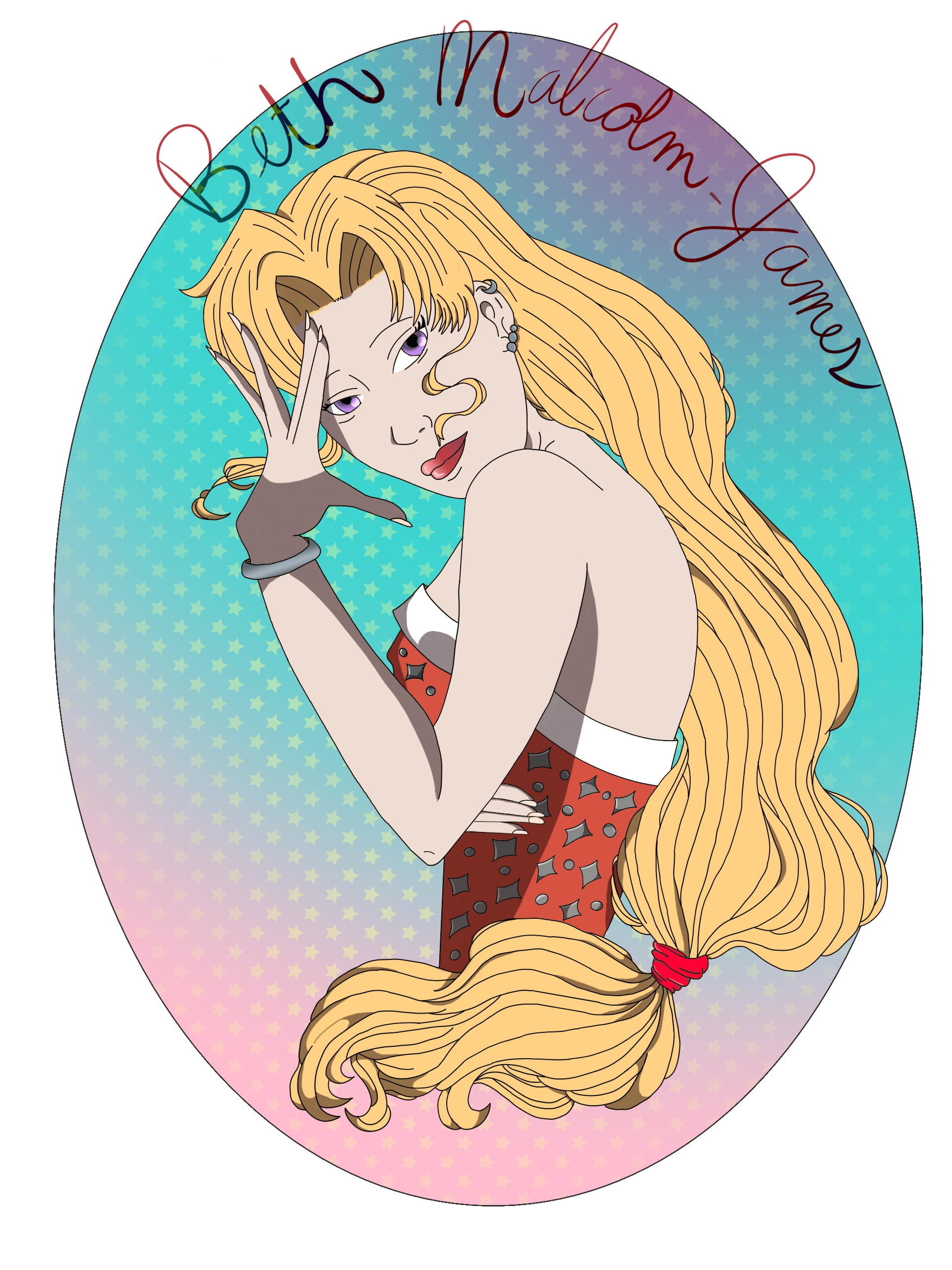 Beth Malcolm-James Back in 2012, an artist on DeviantArt hosted a contest to create a Mary Sue senshi. My submission was a senshi named Sailor Special Starlight, and this is her human form, Beth Malcolm-James. This was one of my first digital renderings. Related